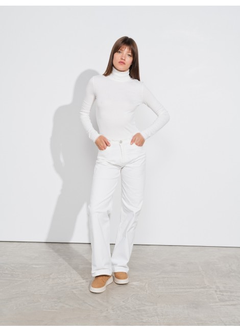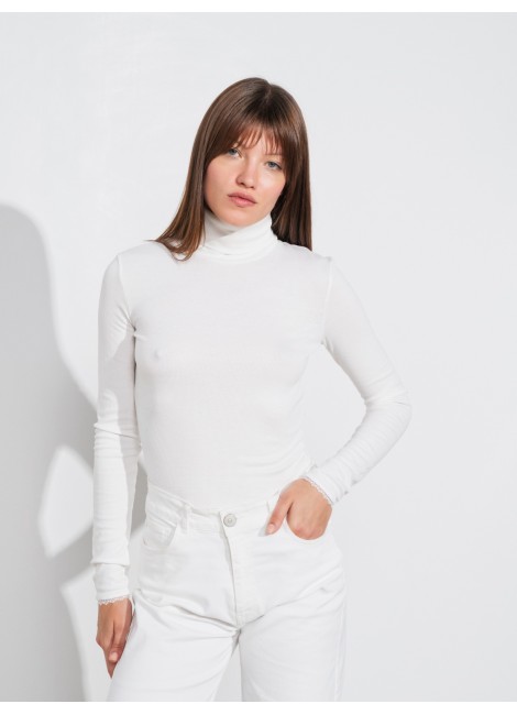 Jersey básico de cuello vuelto en punto canalé. Detalle de encaje en los puños.