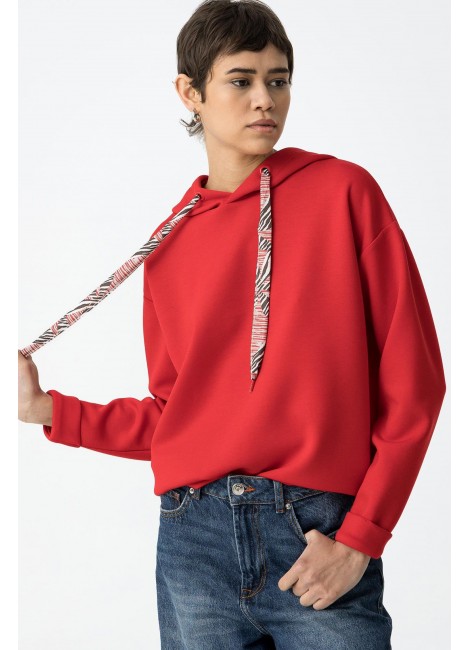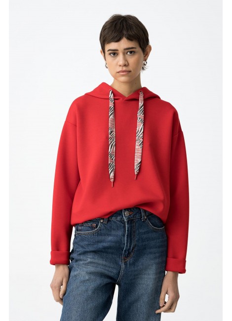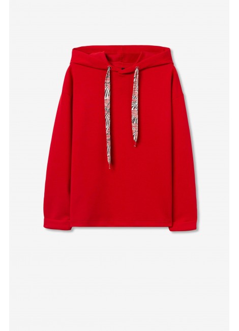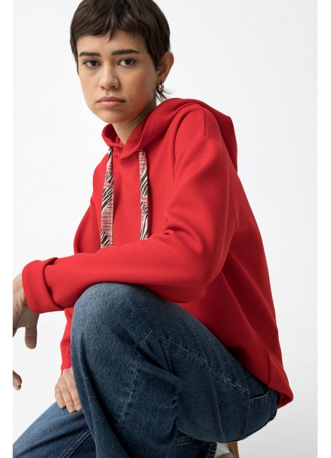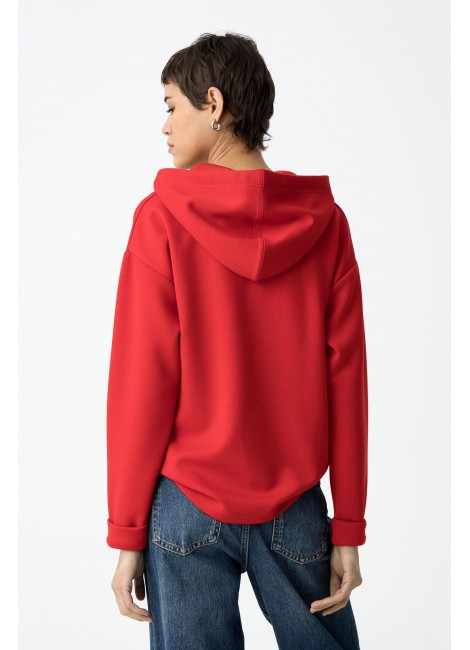 Sudadera con capucha de punto fino, corte relajado, con cordón de raso, manga larga y puños vueltos.