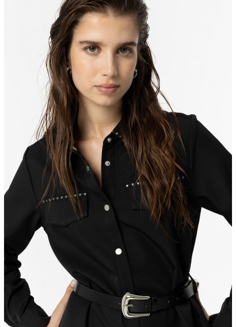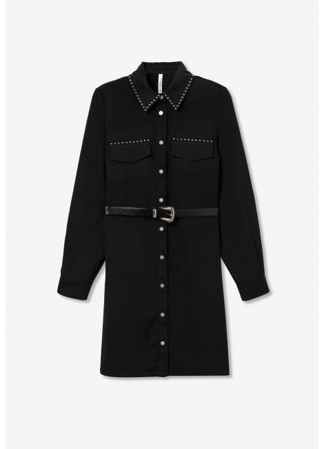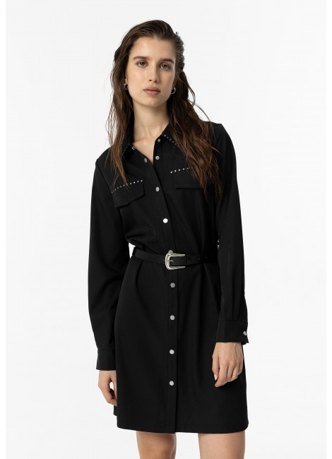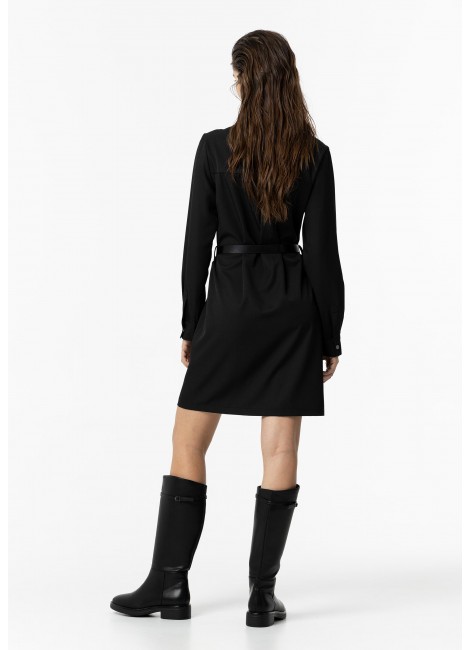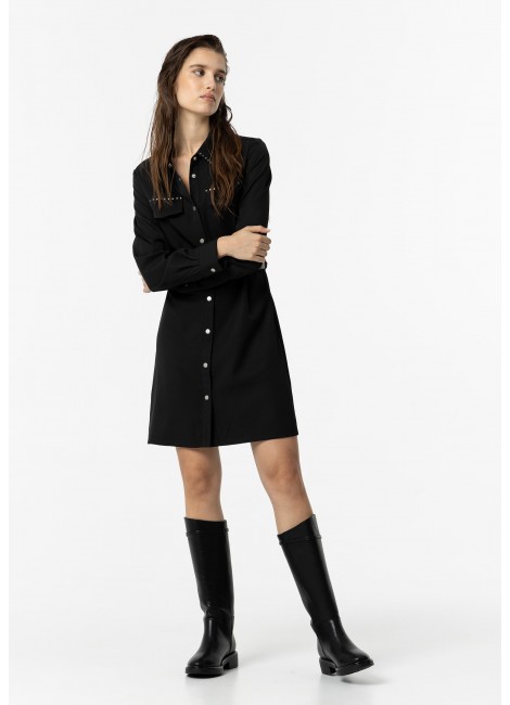 Vestido con cuello de solapa y manga larga con automático en los puños.