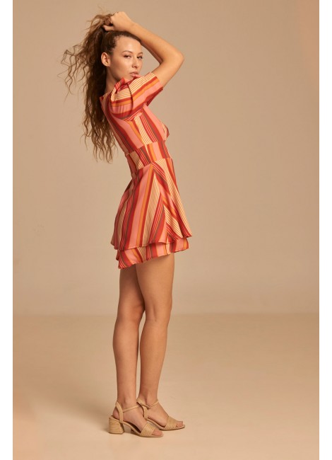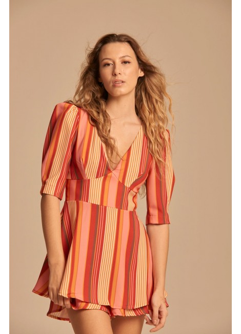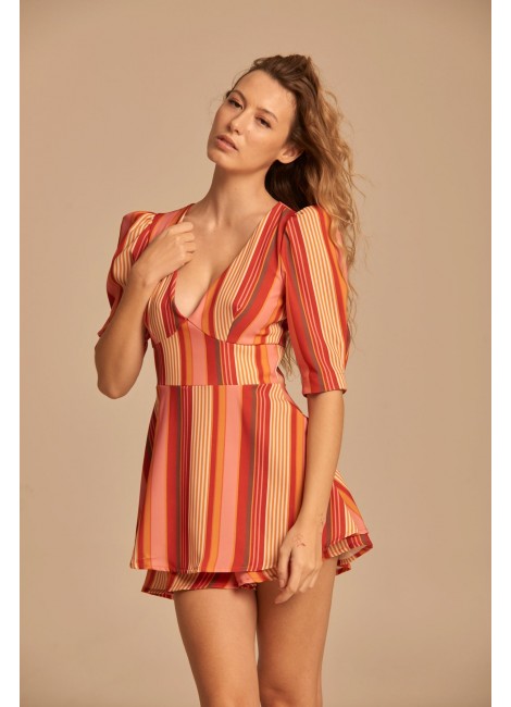 La prenda más coqueta de la colección, el mono Dalia es una oda a las prendas prendas románticas, su estampado hace el match perfecto con falda pantalón, escote en v,