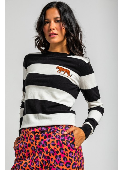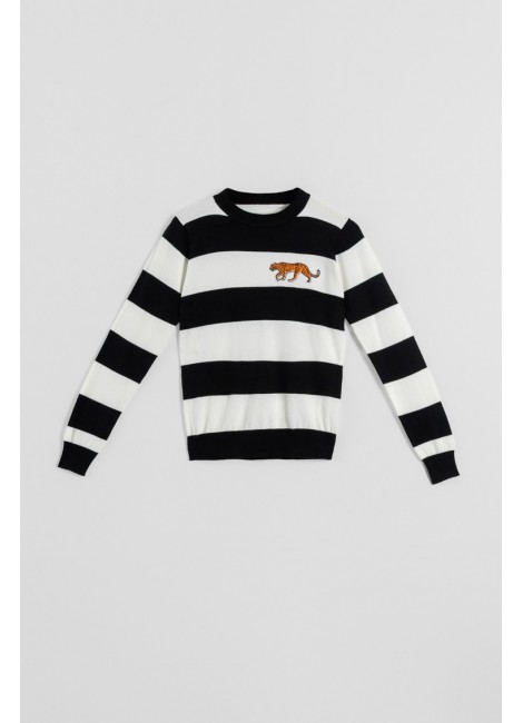 I'm Felina: como buena Lolina todas tenemos nuestra parte Felina. - Suéter ajustado: Jersey ligeramente largo en punto fino de lana suave. Modelo ajustado con cuello redondo ribeteado en canalé con detalle de ilustración bordada.