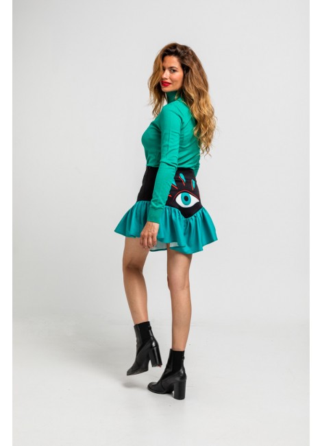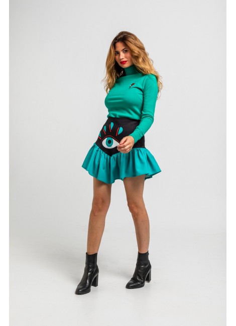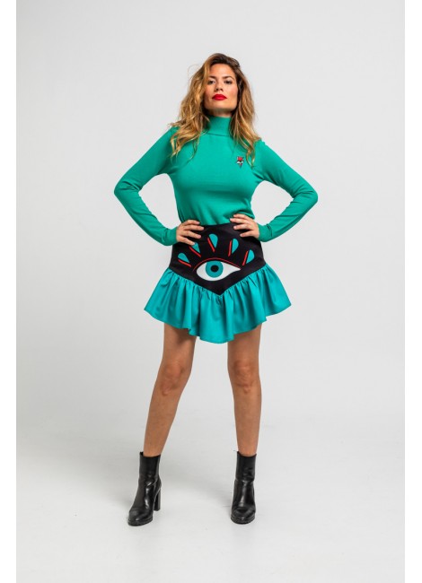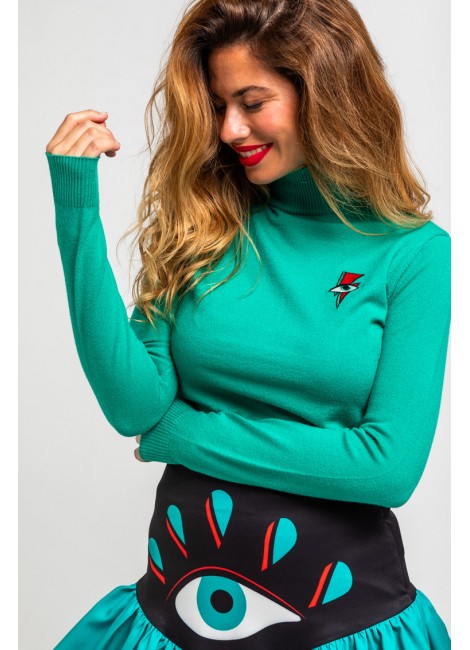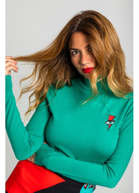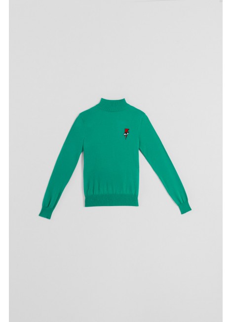 Suéter fino: Jersey en punto fino suave. Modelo de cuello alto y bajo recto ligeramente ajustado. Cuello, puños y bajo de canalé con detalle de ilustración bordada en pecho. - 53% Viscosa, 30% Poliéster y 17% Poliamida. - Lavar a máquina en agua fría. No usar blanqueador. No usar secadora. Secar colgado a la sombra. No planchar. - TALLA XS: Medida de pecho 40 cm, medida de largo de manga 60 cm y largo del cuerpo 56,5 cm. TALLA S: Medida de pecho 42 cm, medida de largo de manga 62 cm y largo del cuerpo 58 cm. TALLA M: Medida de pecho 44 cm, medida de largo de manga 64 cm y largo del cuerpo 59,5 cm. TALLA L: Medida de pecho 46 cm, medida de largo de manga 66 cm y largo del cuerpo 61 cm.