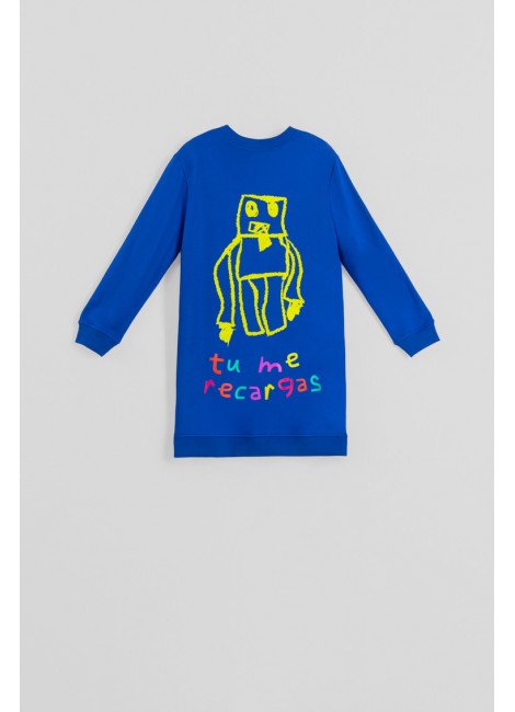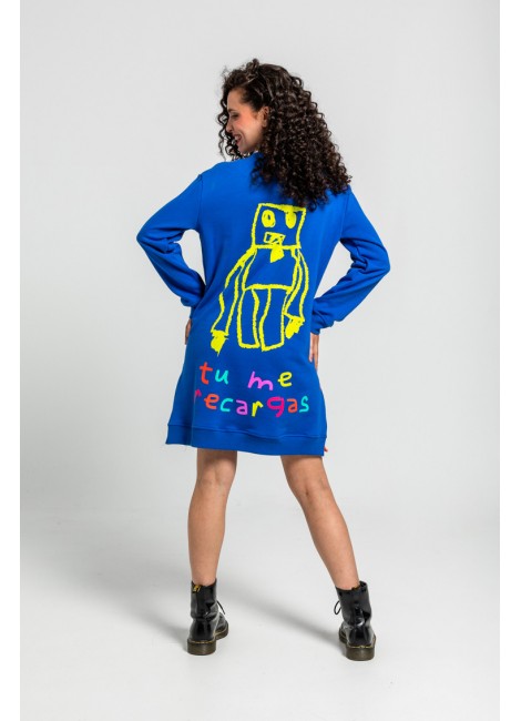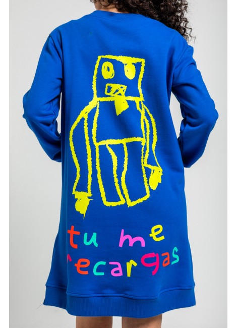We are connected: porque todos ellos, juntos se recargan las baterías. Este robotito es obra de uno de los maravillosos niños del centro de acogida de Granada al que irán destinados parte de los beneficios de esta colección. - Vestido sudadera cremalleras: Vestido sudadera oversize de tejido de algodón elástico de corte mini. Modelo con cremalleras en los laterales y bolsillos. Acabados en puños y bajo de canalé. - 95% Algodón y 5% Elastán. - Lavar a máquina en agua fría. No usar blanqueador. No usar secadora. Secar colgado a la sombra. Planchado a temperatura baja, por debajo de 100 ºC. Planchar del revés. No dejar la plancha parada sobre la prenda. Lavar con colores similares. - TALLA XS: Medida de pecho 50 cm, medida de la cintura 49 cm, medida de la cadera 51 cm y largo del cuerpo 86,5 cm.TALLA S: Medida de pecho 52 cm, medida de la cintura 51 cm, medida de la cadera 53 cm y largo del cuerpo 88 cm.TALLA M: Medida de pecho 54 cm, medida de la cintura 53 cm, medida de la cadera 55 cm y largo del cuerpo 89,5 cm.TALLA L: Medida de pecho 56 cm, medida de la cintura 55 cm, medida de la cadera 57 cm