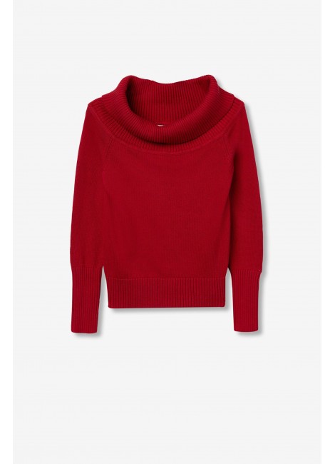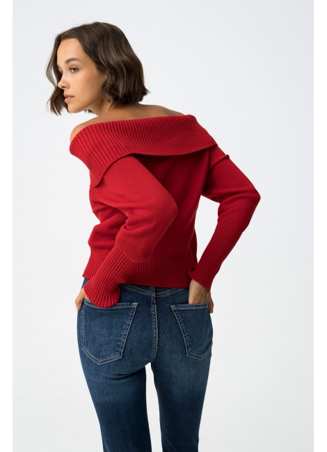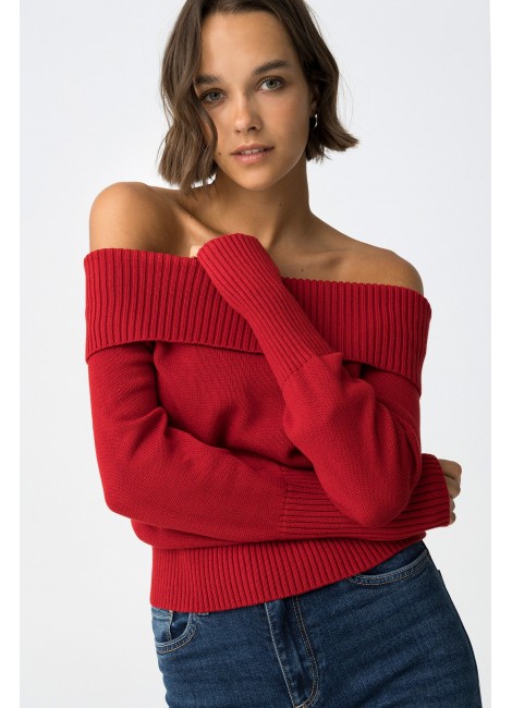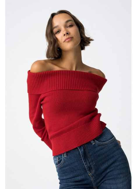 Jersey slim fit con escote hombro a hombro, manga larga y remates en punto canalé.