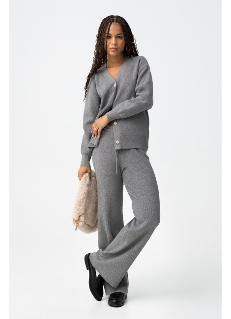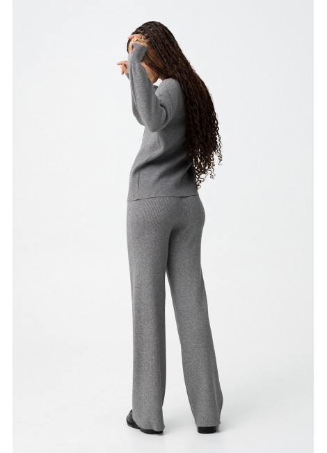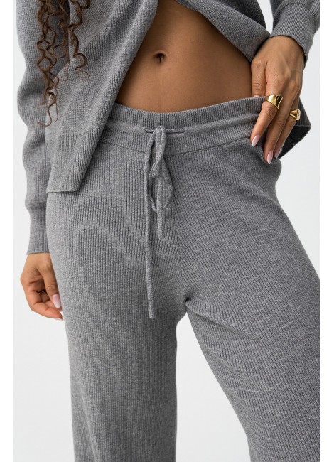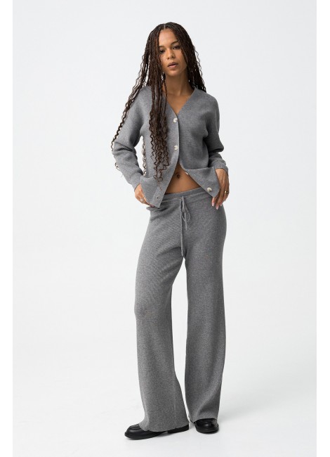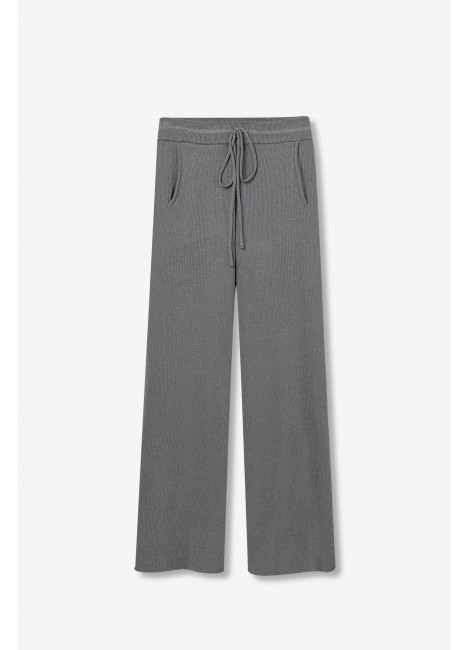 Pantalones straight de punto canalé con cordón en la cintura.