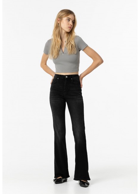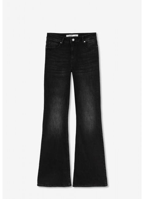 Vaqueros de corte recto en color verde oliva, con bolsillos traseros y cierre de botones.